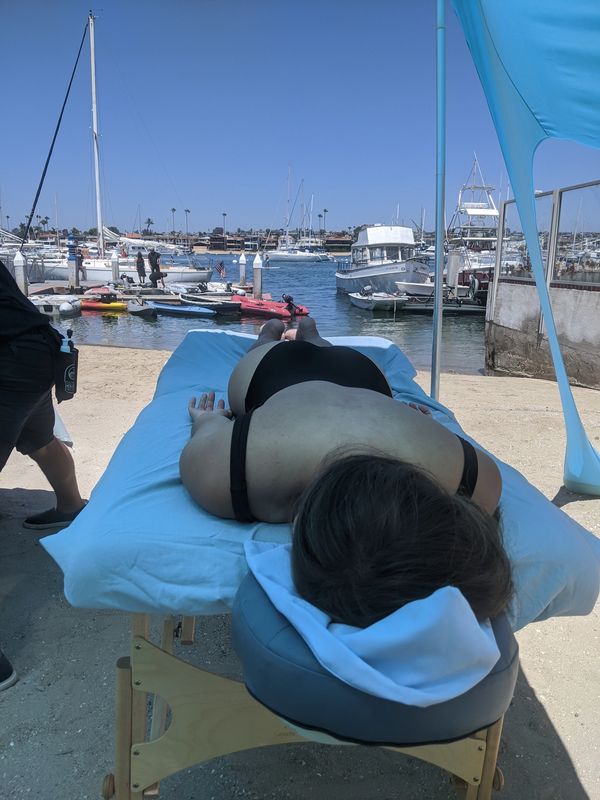 Client is post op starting her lymphatic drainage massage